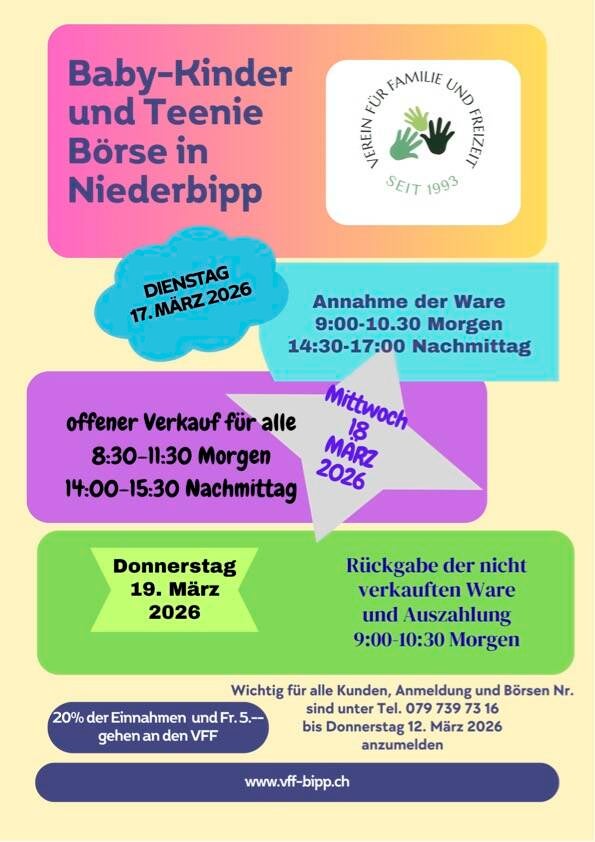 Die Kinderkleiderbörse findet zweimal im Jahr im Räberhus in Niederbipp statt. Besuche unsere grosse und beliebte Börse: